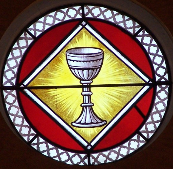 The Chalice is a symbol of faith and worship. A cup of wine is a symbol of joy and at the Passover cups of wine are drunk in celebration of God’s redemption of Israel from slavery in Egypt. Jesus connected the redemption from Egypt to the redemption God was bringing to Israel and all the peoples of the world from the tyrrany of evil by referring to the Passover cup as the New Covenant in his blood. Jesus’ faithfulness to God and his mission, even at the cost of his life, brought us freedom from the power of Sin and Death and opened the way for God’s power to break down the strongholds of evil in our world.